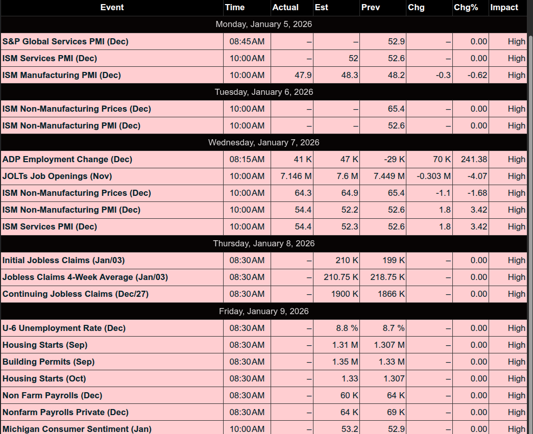 For the Week Ending Friday, January 2, 2026