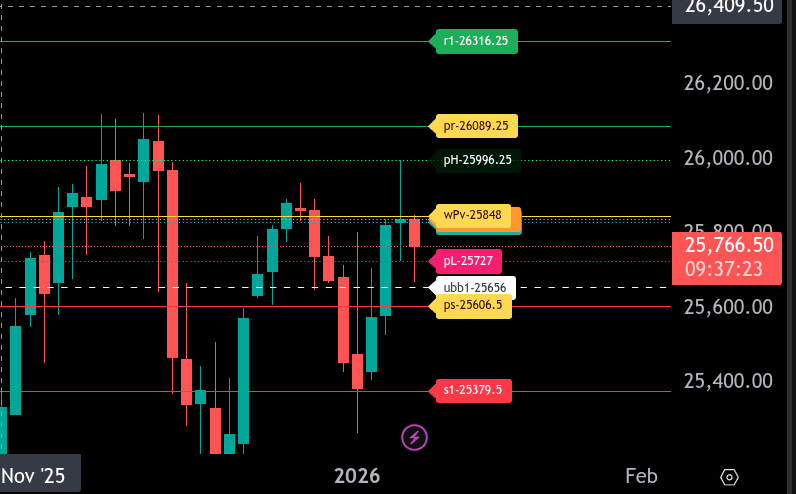 On the upside, first resistance comes in at 25,996.25, followed by 26,089.25, which is the upper range target. A reclaim and hold above 25,848.00 would shift momentum back to the upside and put these higher levels in play.