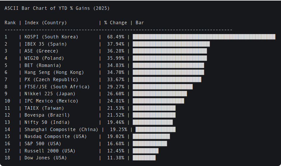 Below are the YTD returns of the top four Asian, European, US, and emerging markets. Obviously, the selloff in May and April didn’t help the US’s returns, but if you start from the April lows, the US indices are really not that far off track.