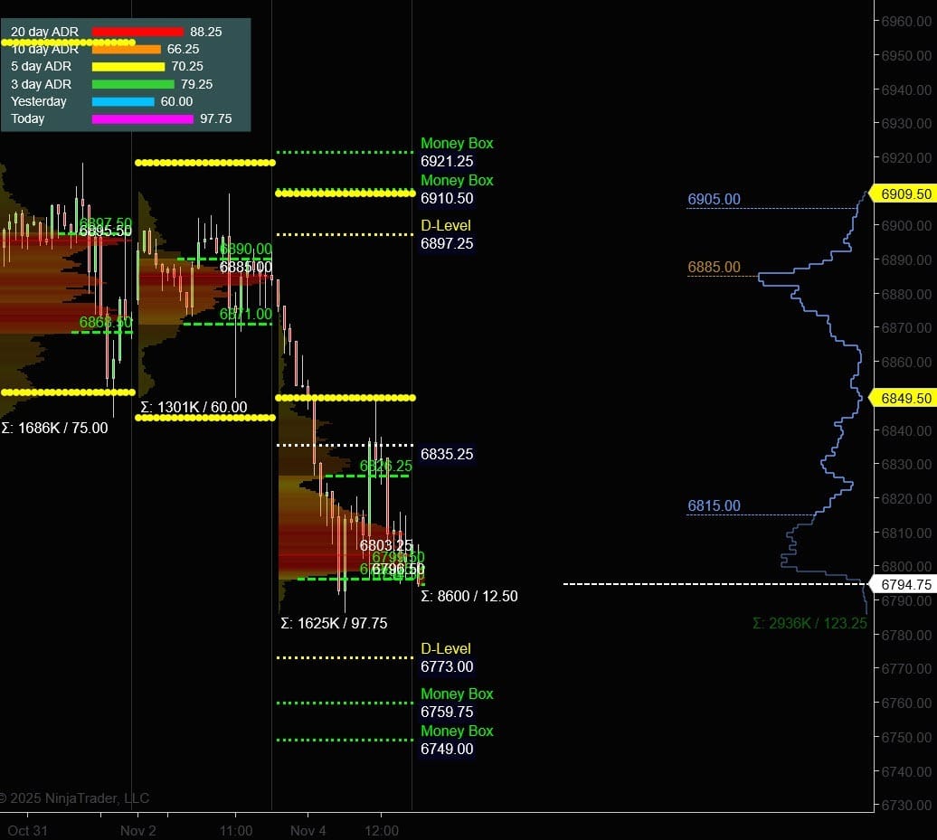• 6850 Level: Served as a battleground throughout the day, first as backtest resistance, later reclaimed then defended into close.