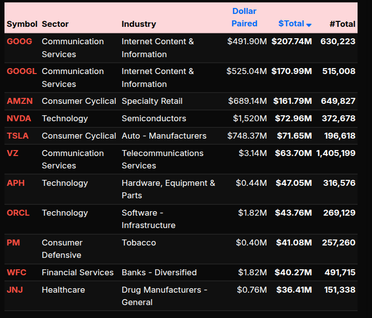 Alphabet (GOOGL/GOOG): ~+$750–$800 billion combined.