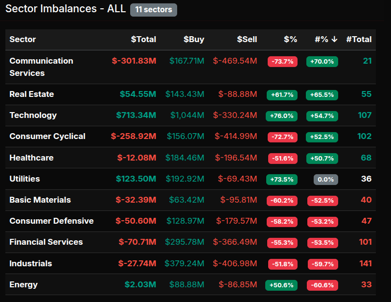 • Total Advance/Decline: 68% Advance