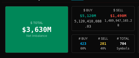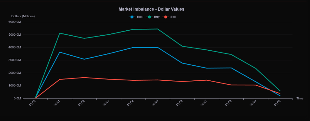 A late-session $3.5B buy imbalance added confirmation of strong underlying flows despite intraday weakness.