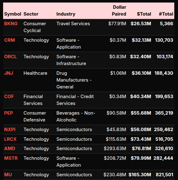 The Market-on-Close (MOC) imbalance showed a clear buy skew early in the 3:50 window, with 77–80% of flow on the buy side and roughly 700 symbols reporting. However, the imbalance decayed into the bell, closing near 60% buy and $200 million total. This fading buy pressure aligned with the modest dip into the cleanup session.