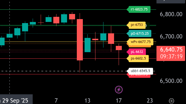 Overall, the market bias leans bearish below 6677.75. Bulls must regain control above this level to shift the tone back toward upside continuation.