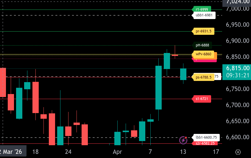 Bulls regained the 50-day MA (6806.50) and 200-day MA (6795), which are now acting as loose support