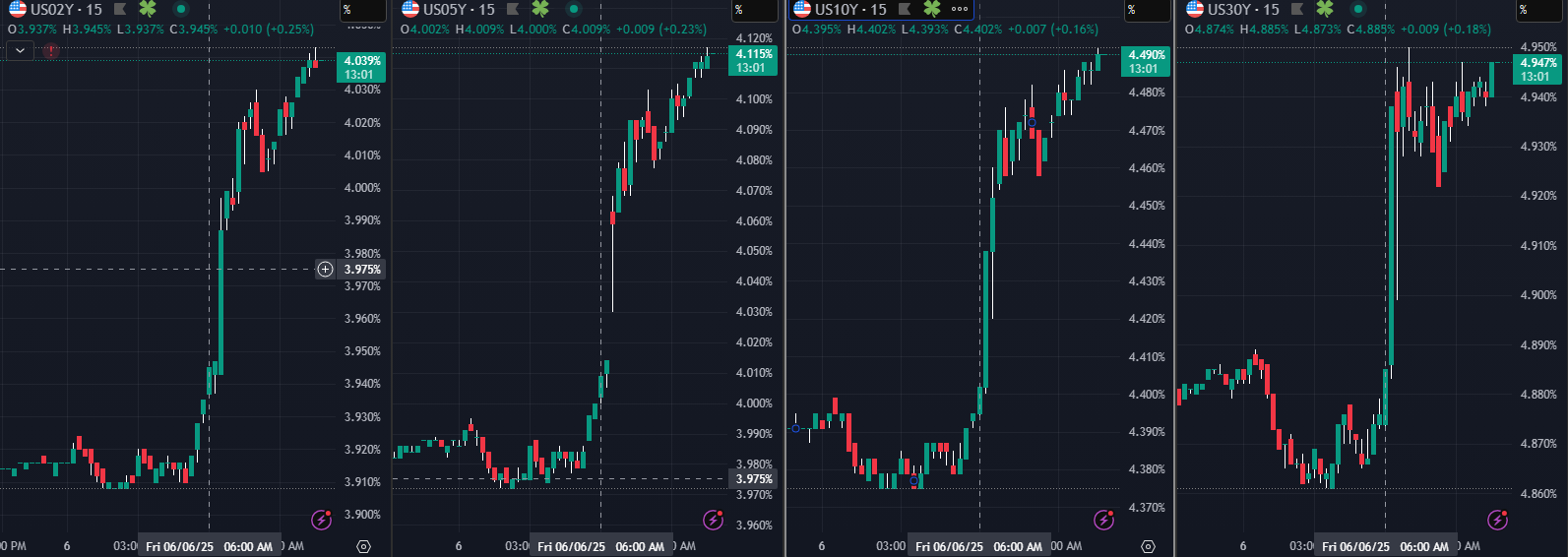 Traders awaited the 8:30 AM NFP release, which came in above forecast at 139K (vs. 126K est.), creating a bullish early bias.