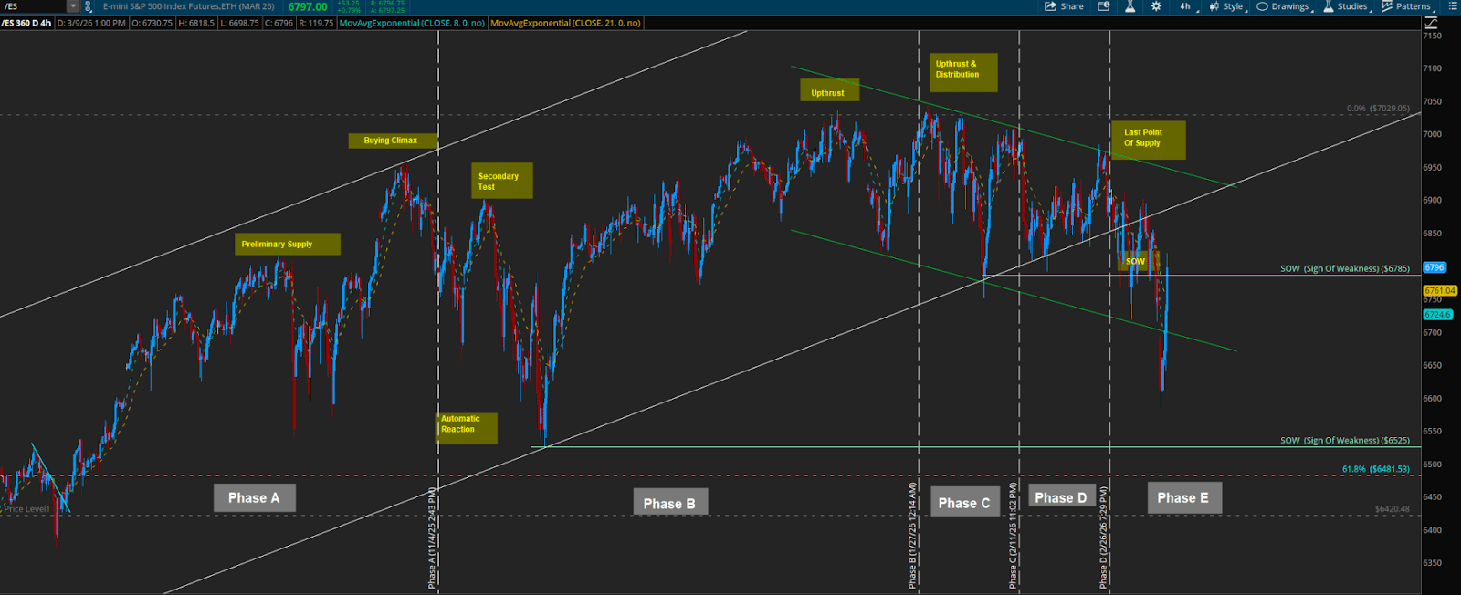 A clear Sign of Weakness driving price toward 6600 with urgency