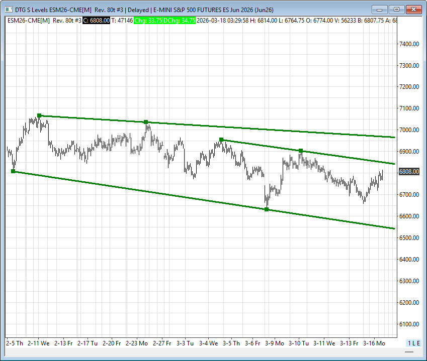 The Fed should have little bearing on today’s trade, but one thing is for sure: the rollover has. The big show is coming FRYday with the March Quad Witching’s $7.1 trillion, record expiration. I have to admit that the ES and NQ have firmed up, and I have seen some back-and-fill price action the last few days, but until there is a ceasefire in the Middle East, there will continue to be high volatility, especially if Iran keeps hitting the oil complex in the Gulf.