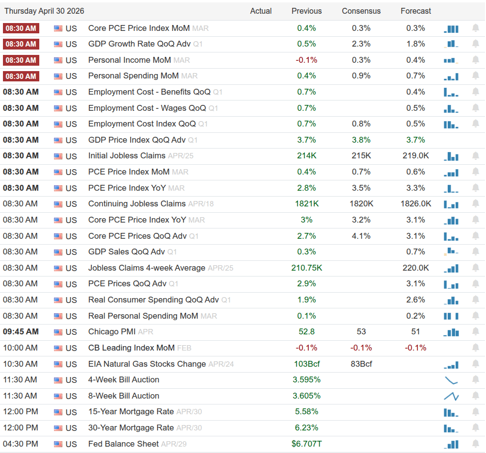 • Key data at 8:30am ET (Core PCE, GDP, Employment Costs) is a major near-term catalyst.