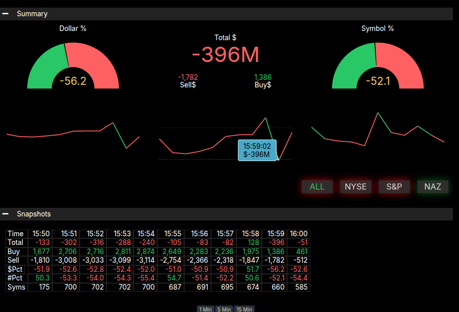 MOC Sell was reported at $338M, which David jokingly referred to as “Mice Nutz” — indicating minimal significance.