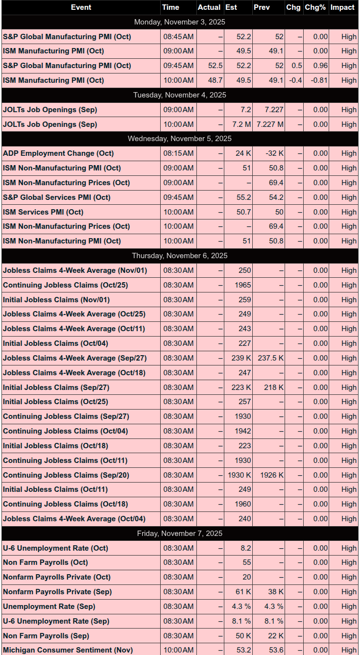 Important Earnings, Fed & Economic Calendar: November 4-6: