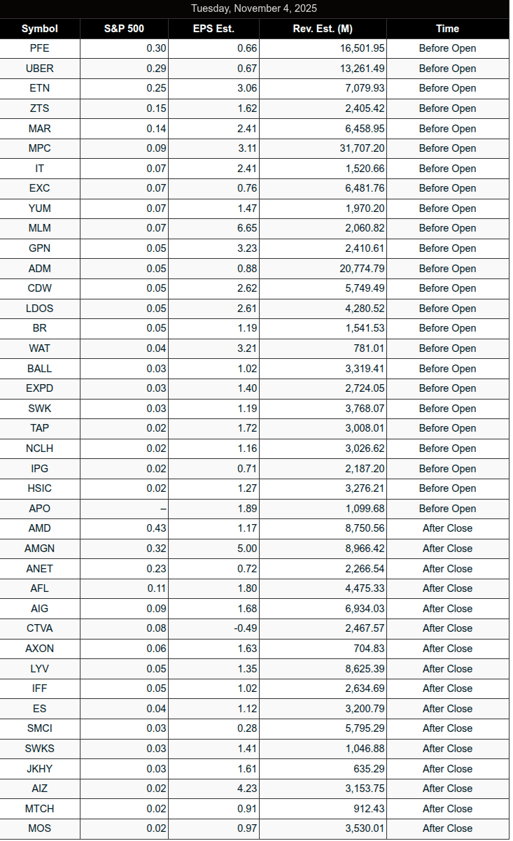 Key Earnings in Focus: Eyes on AMD, Uber, Spotify, Super Micro (SMCI) today. Notable premarket and postmarket earnings include Pfizer, Marriott, Snap, Lyft, Amgen, Rivian, and more. MCD, HUM, and NVO report Wednesday.