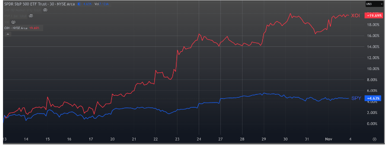 Since the FOMC announcement, the S&P 500 has remained rangebound over the past three sessions, with overlapping value areas reflecting short-term market indecision. This consolidation phase suggests that traders are awaiting a catalyst before committing to directional exposure. During periods of broad-market hesitation, relative strength analysis becomes increasingly important. Notably, the Oil Services (OIH) sub- sector has exhibited strong momentum and sustained buying interest. From the S&P 500’s recent low on October 10, the index has advanced 4.62%, while the oil services sub-sector has outperformed significantly, gaining 19.69% over the same period—demonstrating clear relative strength and heightened demand within the energy complex.