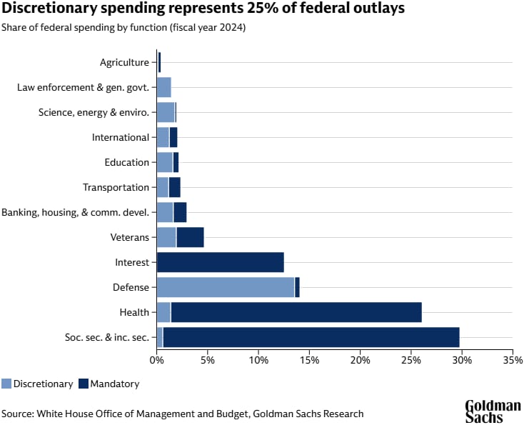 That estimate assumes the shutdown affects around 900,000 federal employees and generally follows the same pattern as prior shutdowns. If the Defense Department or other agencies can fund some operations from other sources, the effect on growth would be slightly smaller, Goldman Sachs Research economists Alec Phillips and Ronnie Walker write in a report.