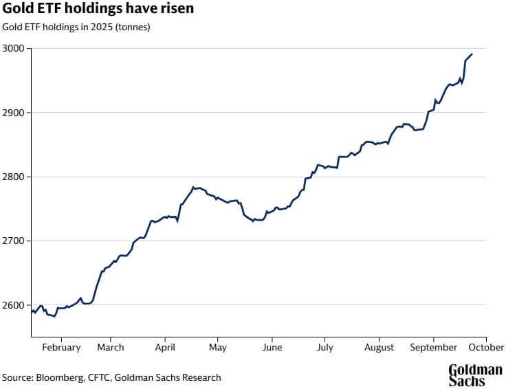 Gold is predicted to rise to $4,000 per troy ounce by the middle of next year, Goldman Sachs Research analyst Lina Thomas writes in the team’s report. Their forecast is driven by strong structural demand from central banks and easing from the US Federal Reserve (which supports demand for gold from exchange-traded funds).