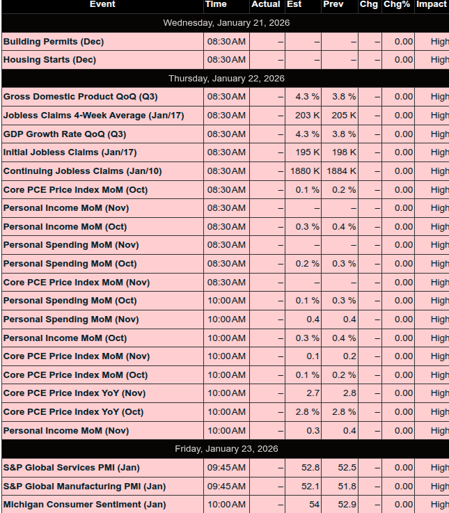 For the Week Ending Friday, January 16, 2026