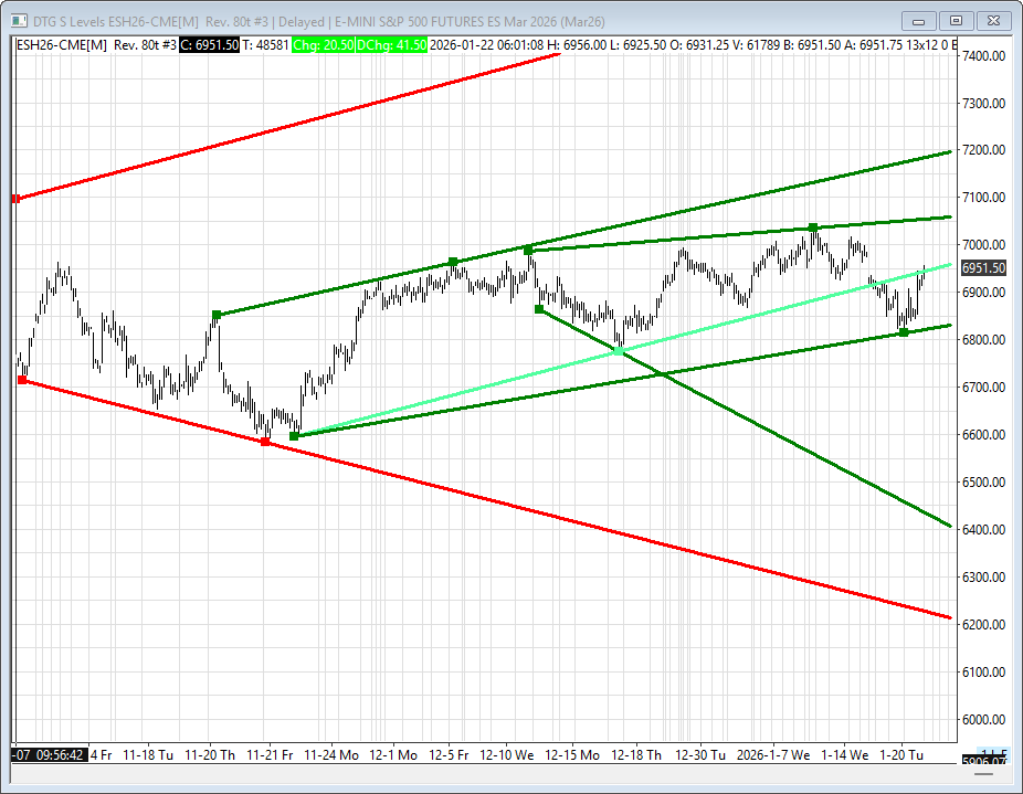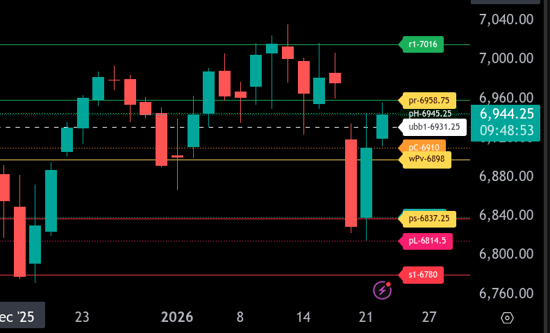He added that he would no longer impose fresh tariffs on several European countries he had previously singled out for opposing his Greenland takeover. The ES was trading around 6858 and rallied up to 6945.25 — a near 100-point rally in 22 minutes.