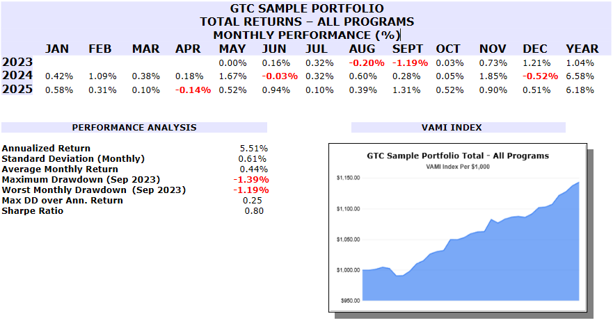 We thought that for this week and the next two weeks we could look over the GTC Sample Portfolio as a whole, consider its individual programs, how things performed in 2025 according to what we were looking to accomplish, and then our thoughts for 2026