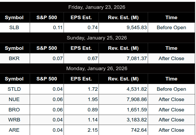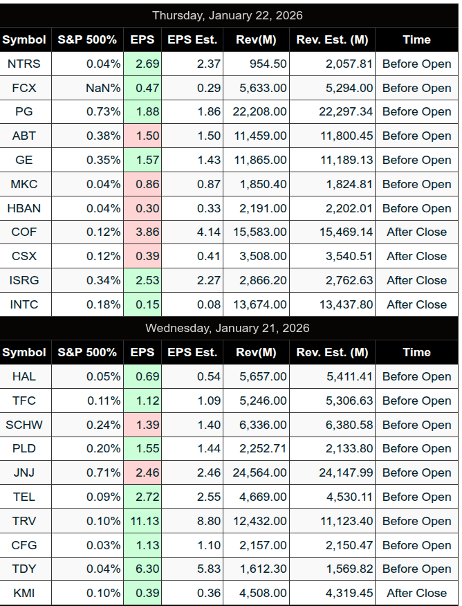 • Earnings in Focus: Pre-market earnings include ABT, FCX, GE, PG, HBAN, MKC, NTRS, ORI. Post-market: AA, COF, CSX, INTC, EWBC, ISRG, SSB. Friday AM: BAH, ERIC, SLB.
