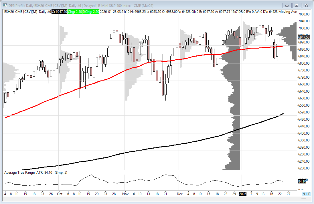 • Wednesday saw extreme volatility driven by Greenland headlines, with multiple 75+ point swings.