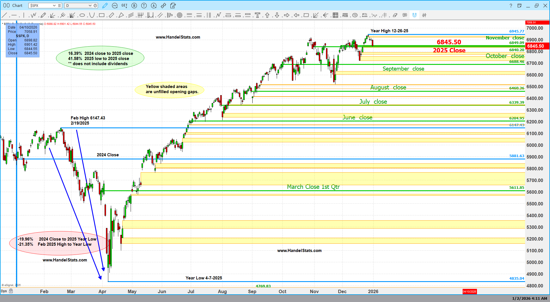 As we move into 2026, these monthly and quarterly closes, along with the unfilled gap structure, remain critical reference points for risk, opportunity, and expectation.