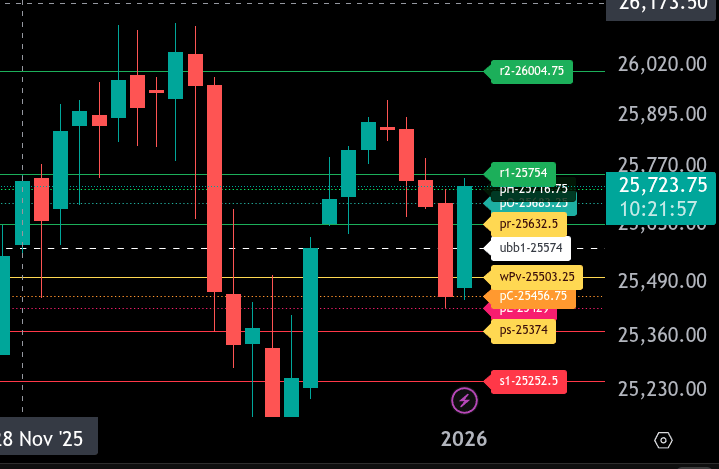 On the downside, first support is at 25,632.50. Below that, expect responsive buyers near 25,574. A break back below the bull/bear line at 25,503.25 shifts control back to sellers, targeting 25,456.75 and then 25,429. A deeper liquidation could extend toward 25,374, and the lower range target at 25,252.50.