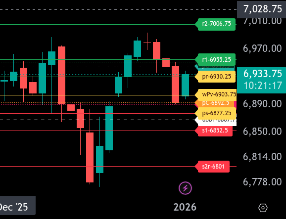 Overall, the bias remains bullish above 6903.75 and defensive below it. Trade location around the bull/bear line should dictate direction and risk today.