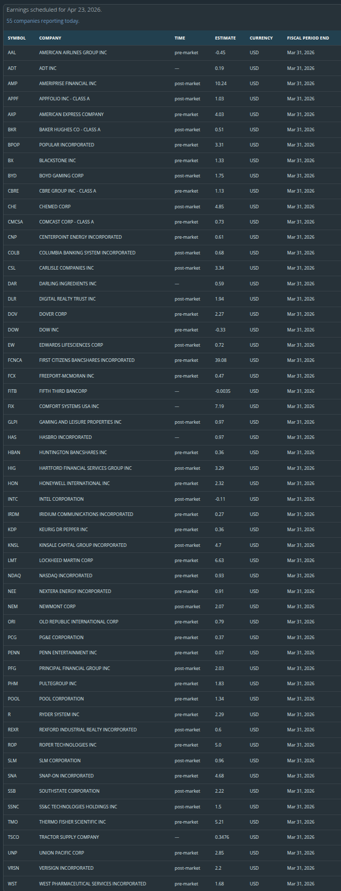 • Friday AM: PG, HCA, SLB, NSC