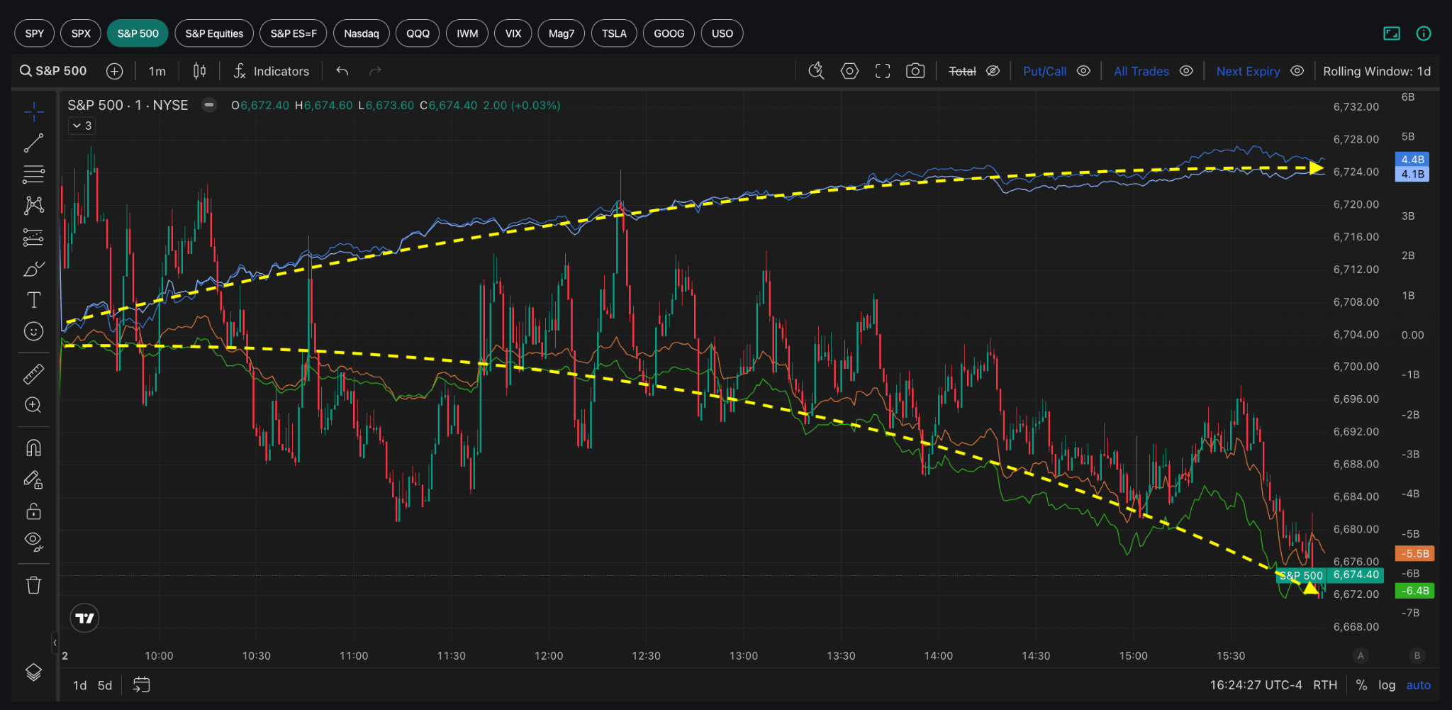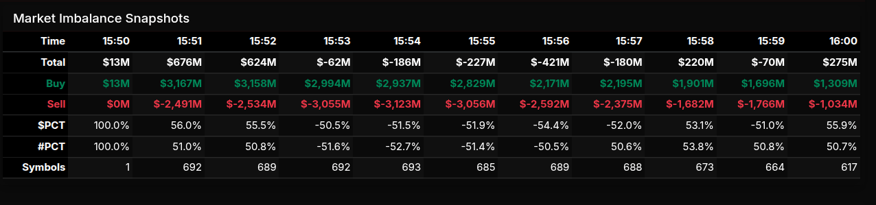 Despite a $627M MOC buy imbalance, the market closed near session lows, which David noted was not constructive for bulls heading into the next session.