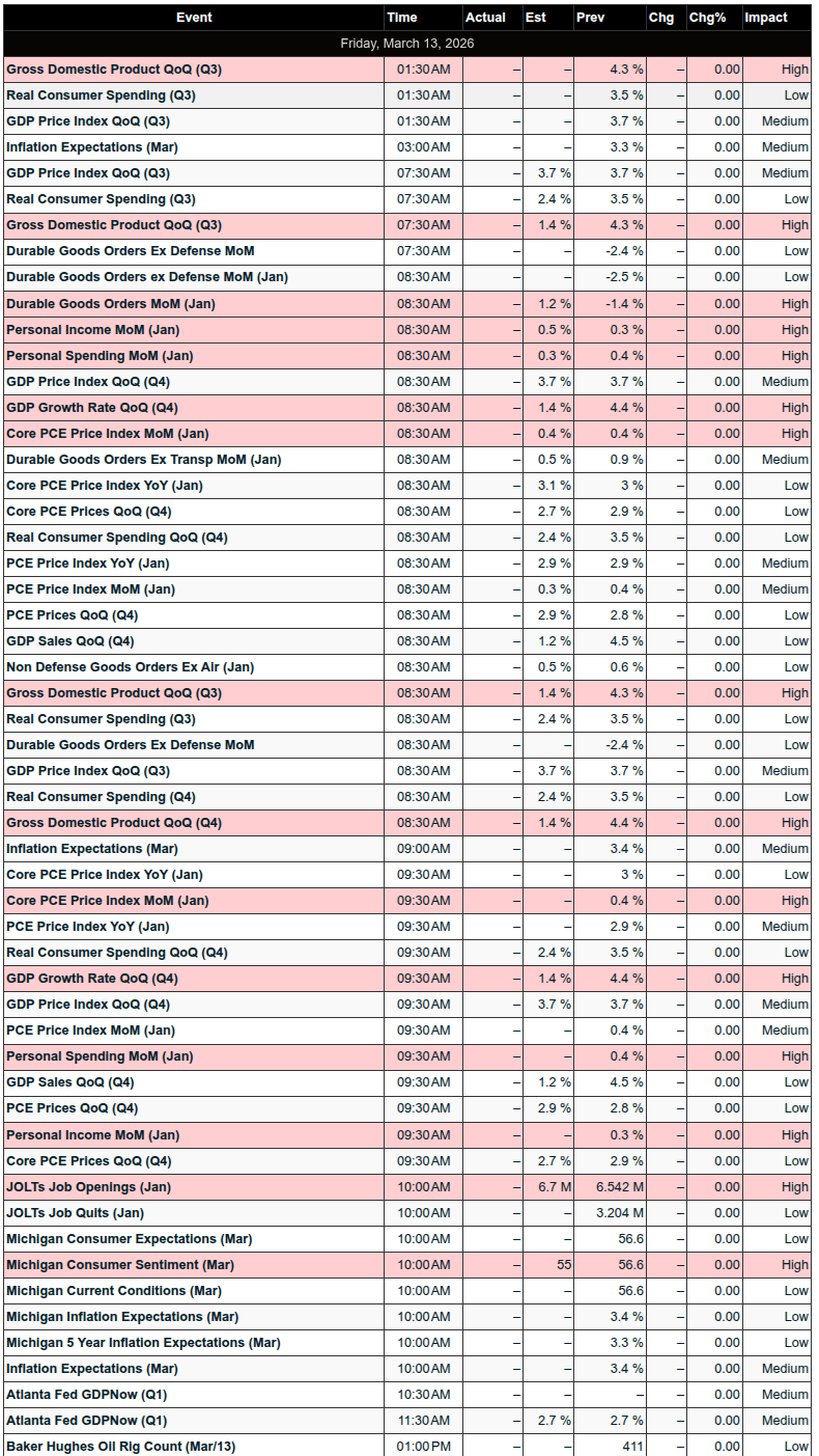 Economic data focus: A packed calendar due to delayed releases from the government shutdown, including Core PCE, GDP, Durable Goods, and Personal Income/Spending (8:30 ET) followed by JOLTS and Michigan Sentiment (10:00 ET).