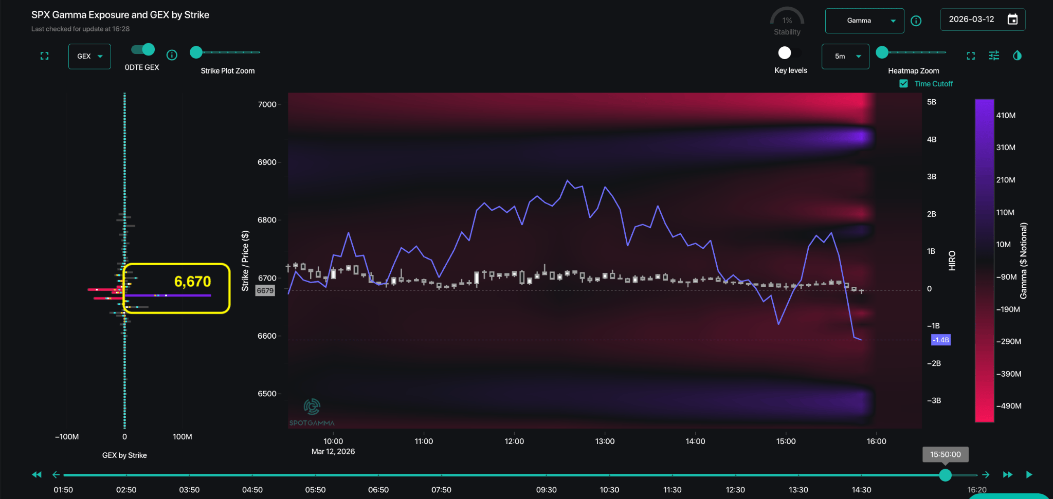 The 99th percentile 0DTE GEX strike at 6670 provided support for the day.