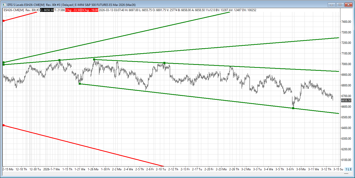Volatility: ES volatility eased slightly but remains elevated with a 5-day average range of ~128.5 points.