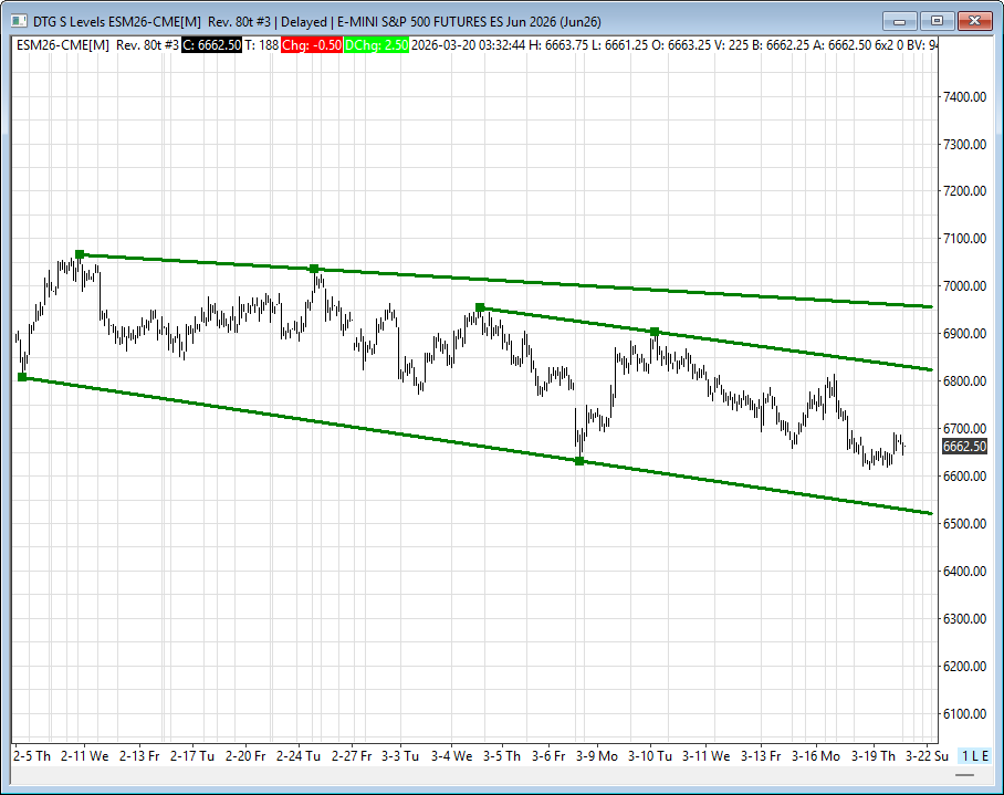 After the open, the ES sold off down to 6611.75 and then rallied up to 6655.50 at 10:10, before selling off down to 6620.75 at 10:20. The ES rallied again up to 6651.50 at 10:35, and then pushed higher to 6658.25 at 11:05. It sold off down to 6622.00 at 11:45, then rallied up to 6652.00 at 12:05, sold off again to 6631.75 at 12:20, before rallying up to 6648.00 at 12:40. It then sold off down to 6616.25 at 1:10.
