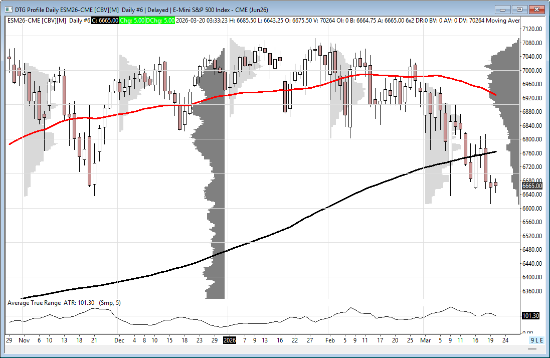 It was another night of bombs across the energy complex in the Middle East. The ES made a high at 6632.00, sold off down to 6618.75 at 9:15, and then this headline hit: NEW: UK, France, Germany, Italy, the Netherlands, and Japan joint statement on Strait of Hormuz—”We express our readiness to contribute to appropriate efforts to ensure safe passage through the Strait. We welcome the commitment of nations who are engaging in preparatory planning.” The ES rallied up to 6646.25 at 9:20 and opened Thursday’s regular session at 6629.25, down 48 points or -0.72%.