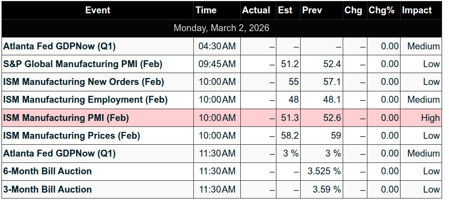10:00am ET – ISM Manufacturing PMI