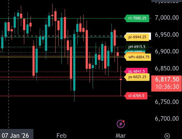 Our lean: My guess is we open down, but I can’t rule out a bounce. There are a lot of sell stops under 6790 and big resistance at the 7900–7930 level. I think you can sell the dead cat bounces.