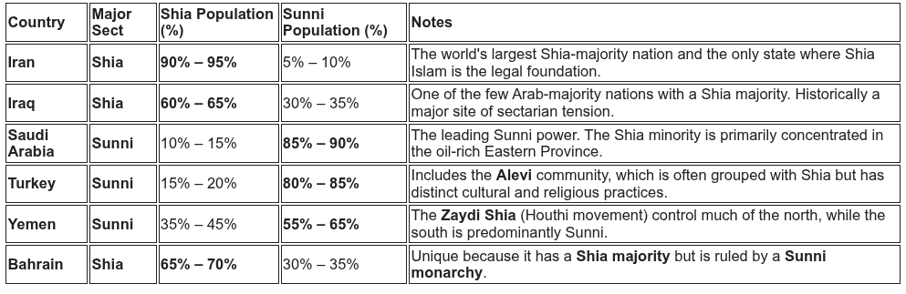 Globally, Sunnis make up about 85–90% of all Muslims. The concentration of Shia Muslims in the Middle East—particularly in Iran and Iraq—is what gives those two countries such significant influence in regional religious politics.