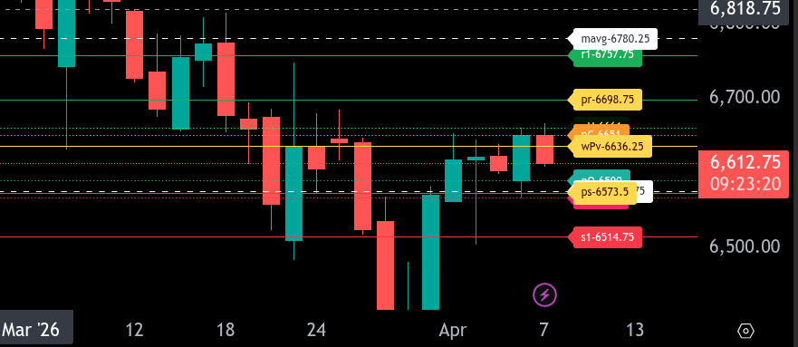 On the upside, initial resistance is seen at 6661.00, which aligns with recent structure. If buyers can reclaim 6636.25 and hold, a push into 6661.00 becomes likely, followed by the upper range target at 6698.75. A sustained move above 6698.75 would signal stronger continuation and could extend toward 6757.75.