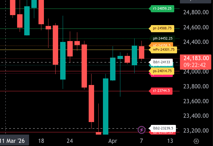 On the downside, the first key support sits at 24133.00, followed by 24093.50. A break below these levels opens the door to 24014.75, which is the lower range target for today. If that level fails, extension toward 23981.50 is likely, with further downside risk toward 23744.50 if selling accelerates.
