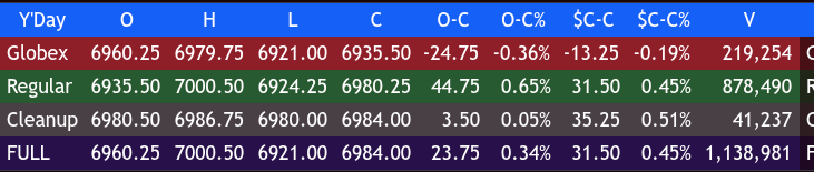 Our lean: That’s a lot of rejection around and above 7000.00. If the ES gaps lower today, I would be looking to buy the early weakness—but I also think there is a lot to overcome on the upside.