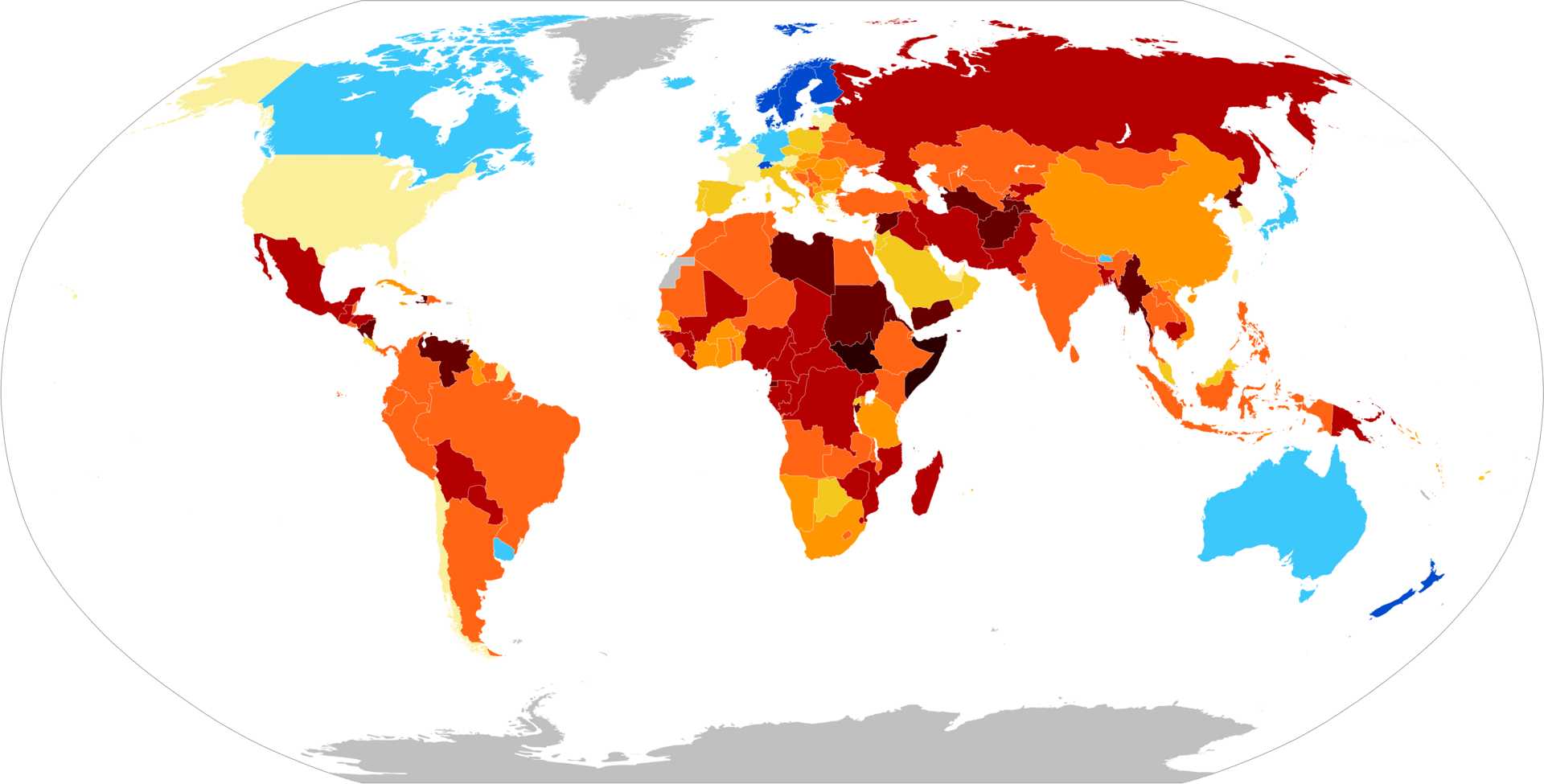 Map of the Corruption Perceptions Index, 2025, as scored by Transparency International: