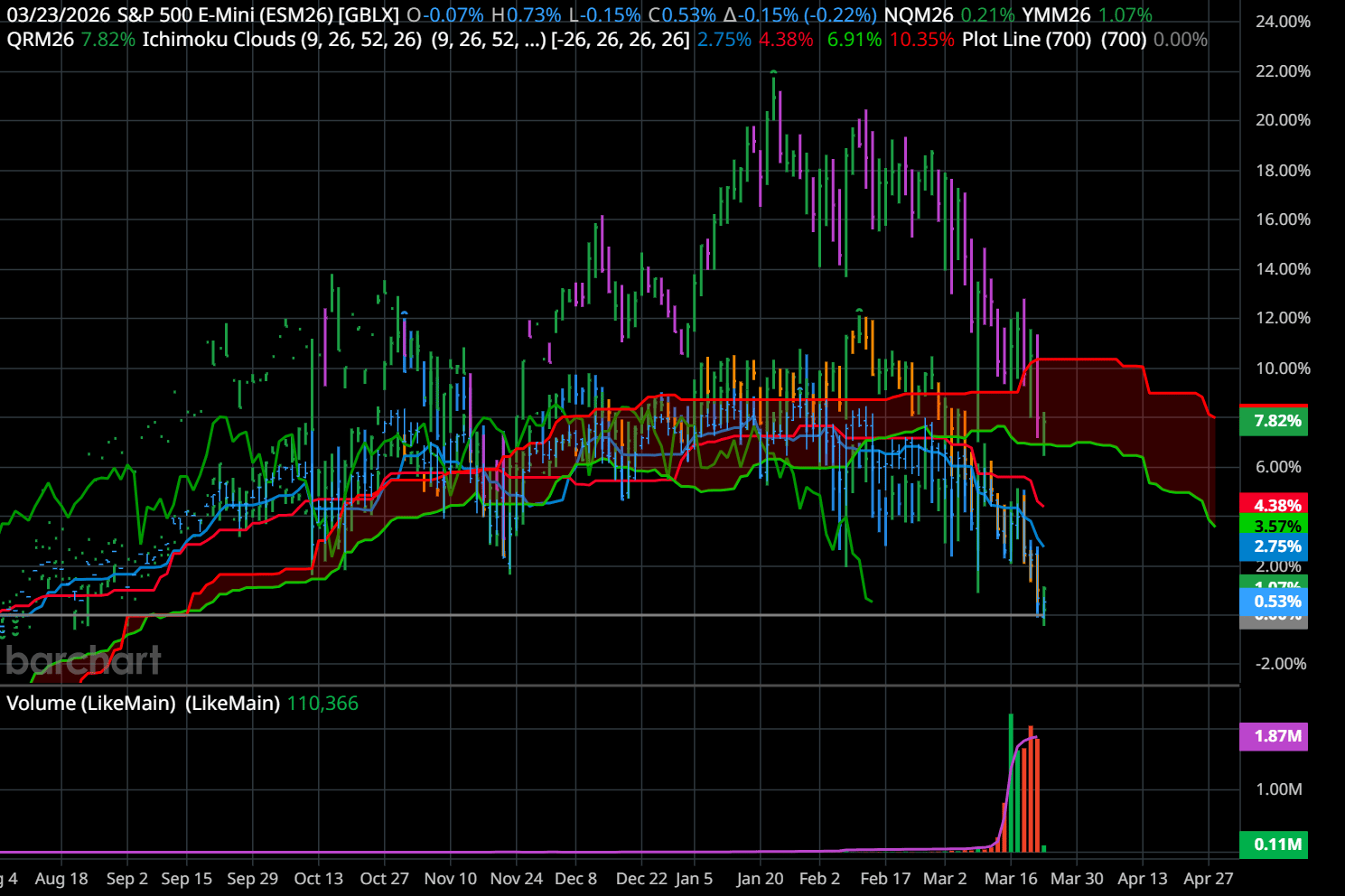 9-Month Chart of ES, NQ, YM, and RTY