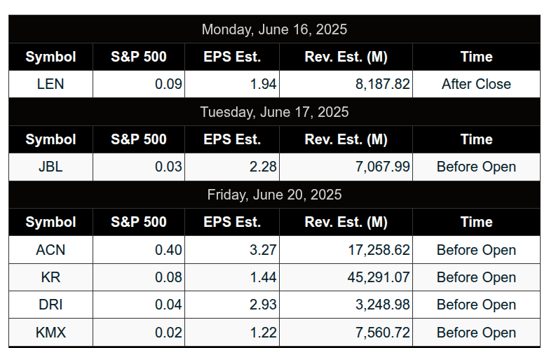 The only thing I can say is that there is a lot of bad shit going on. We have a full economic schedule this week, and the Fed’s two-day meeting, the G7, a lot of tariff war headlines, and the June Triple Witching $4.5 trillion expiration. The shortened four-session week has “overload” written all over it.