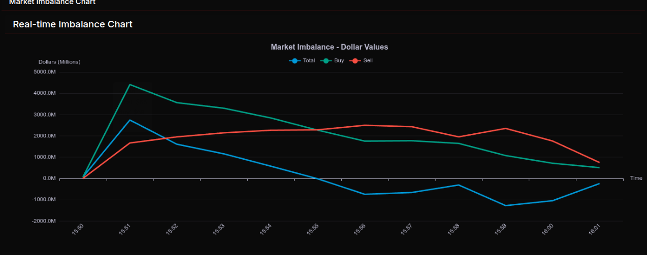 In summary, the MOC displayed a classic transition: strong buy imbalance at the open, gradual rotation mid-session, and decisive sell-side control into the close. The presence of extreme leans on both sides reinforces the idea of institutional rebalancing, with tech acting as the primary vehicle for execution.