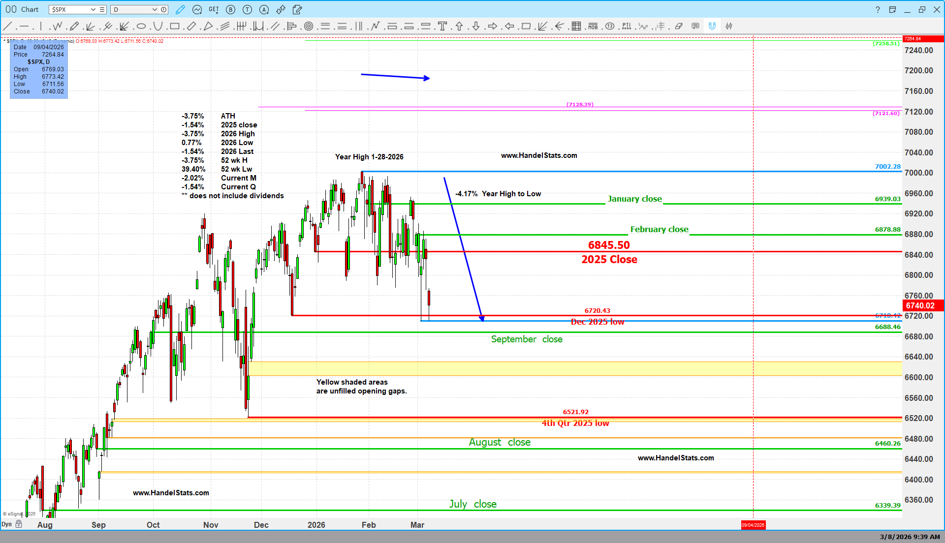 It was no surprise that the ES sold off down to 6783.75 on Globex, and I was I not surprised that the ES tanked down to 6736.75 after the Nonfarm payrolls fell by 92,000 for the month, compared to the estimate for 50,000 and below the downwardly revised January total of 126,000. February marked the third time in the past five months that payrolls declined, following a sharp revision showing a drop of 17,000 in December.