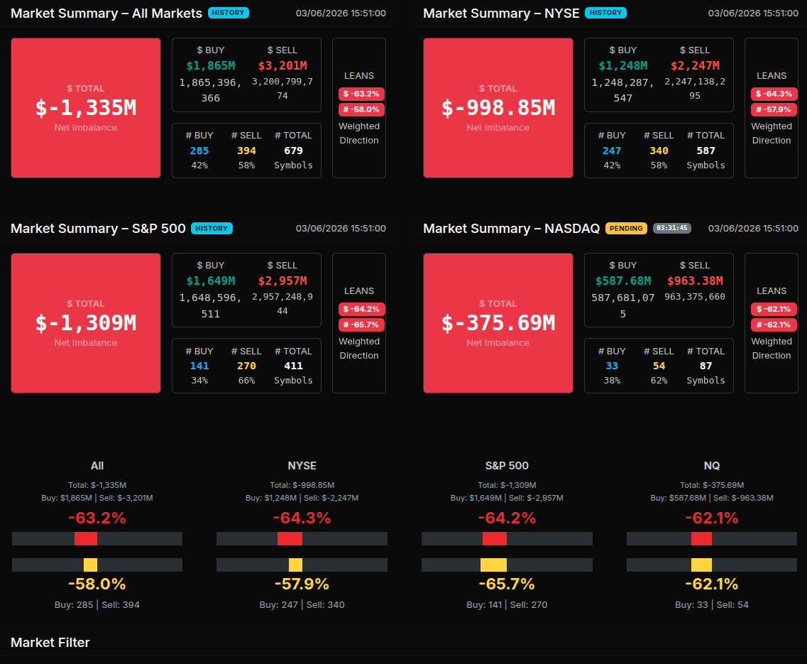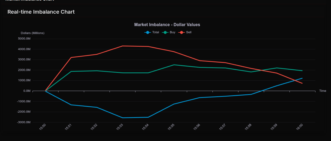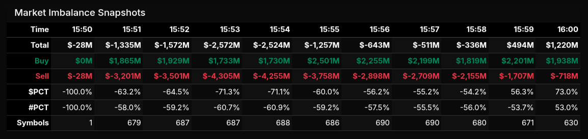 A $700M MOC sell imbalance appeared near the close, confirming the defensive tone heading into the weekend.