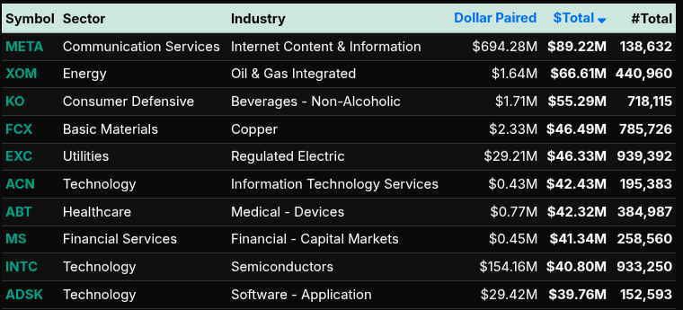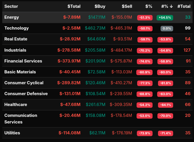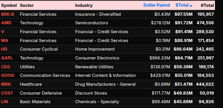 On the symbol level, the biggest sells included BRK.B, AMD, V, MA, HD, AAPL, CEG, GOOG, MRK, COST, and LIN. The strongest buy-side names were META, XOM, KO, FCX, EXC, ACN, ABT, MS, INTC, and ADSK. Taken together, the session showed broad early distribution, followed by aggressive late buy-side cleanup into the close.