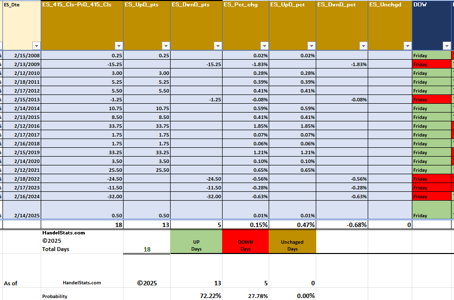 Long weekends often carry a subtle bullish drift, and Presidents Day has followed that pattern historically.