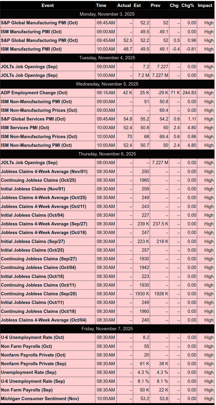 Today is the November Week 1 Friday options expiration, with a notional value of $1.15 trillion. I have to admit, yesterday’s news overload weighed heavily on the downside, and every rally was sold.